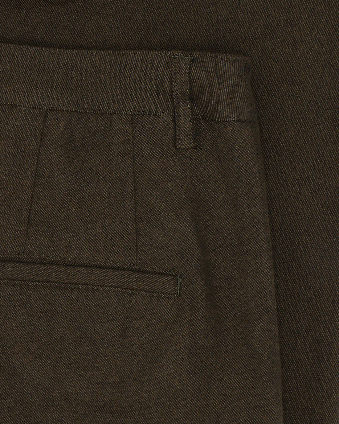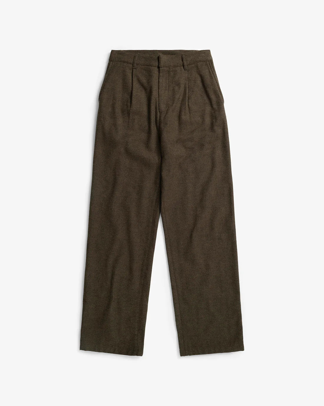 Confectionné au Portugal en flanelle douce 100 % coton biologique, ce pantalon allie confort et élégance. Sa coupe large légèrement fuselée, marquée par un pli structuré, crée une silhouette fluide et raffinée. Idéale aussi bien pour le quotidien que pour le bureau.