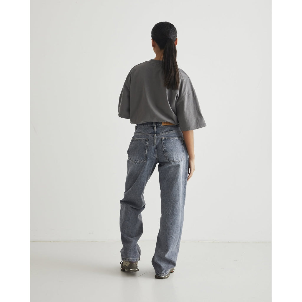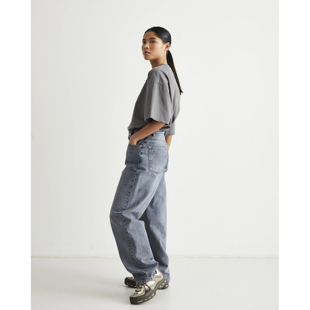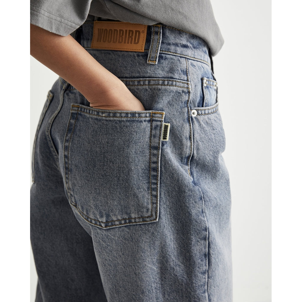 KATHY est un jean de chez WOODBIRD. Il a une coupe droite et large au niveau des jambes, avec une taille haute qui met en valeur la silhouette tout en restant confortable. Le jean dispose de poches latérales et arrière, ainsi que de passants pour la ceinture.