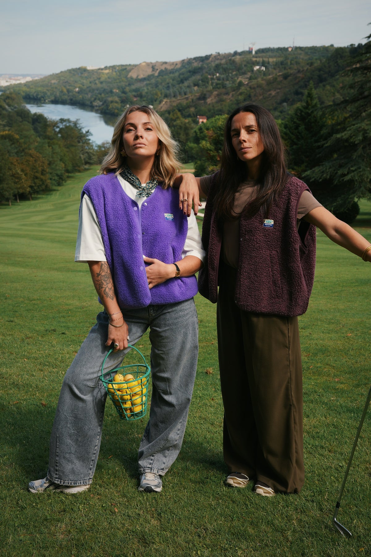 Veste sans manches effet "shearling" bordeaux. Un incontournable des collections AMV et une tendance de la rentrée 2025 !