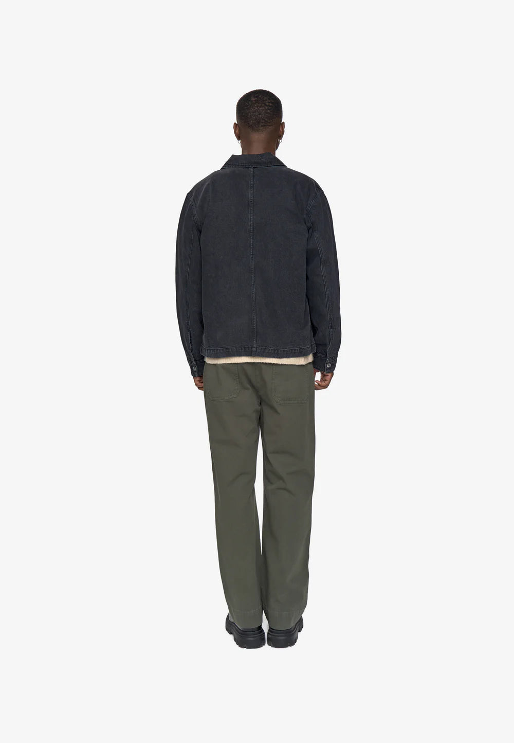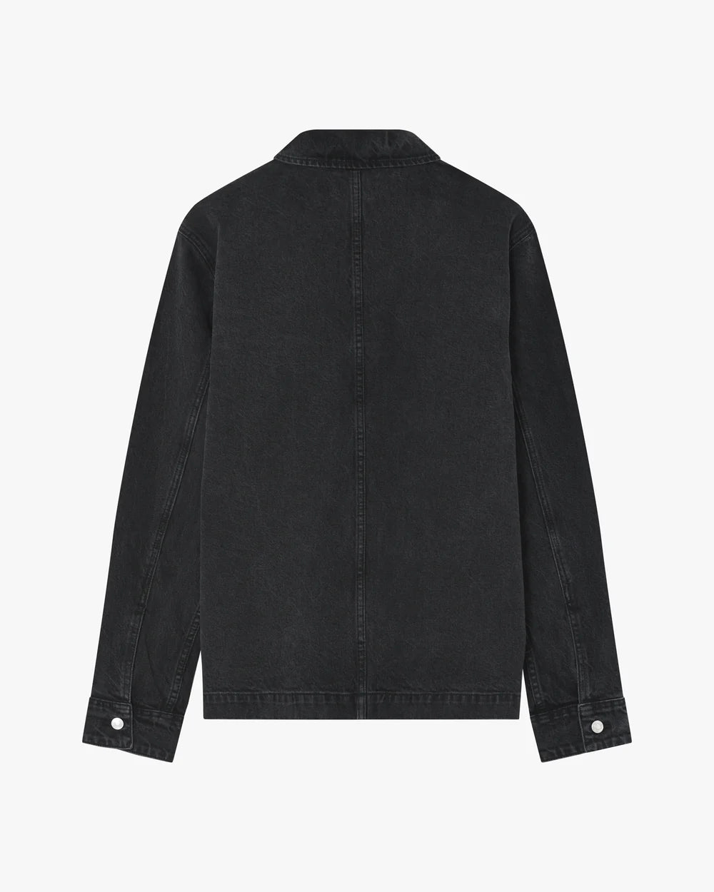 EVEREST est une veste en jean coupe droite décontractée de couleur grise. Elle dispose d'un col classique ainsi que d'une fermeture à glissière à l'avant, avec une poche poitrine boutonnée.