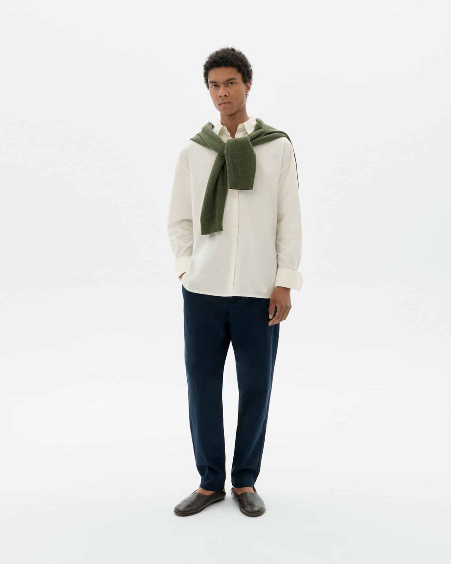 Le pantalon Travel est confectionné en coton biologique épais (260 g/m²) pour un confort durable. Il présente une coupe droite à taille moyenne, avec une jambe droite . Sa taille élastiquée, sa fermeture à glissière avec bouton et ses poches avant et arrière en font une pièce pratique et polyvalente, idéale au quotidien.