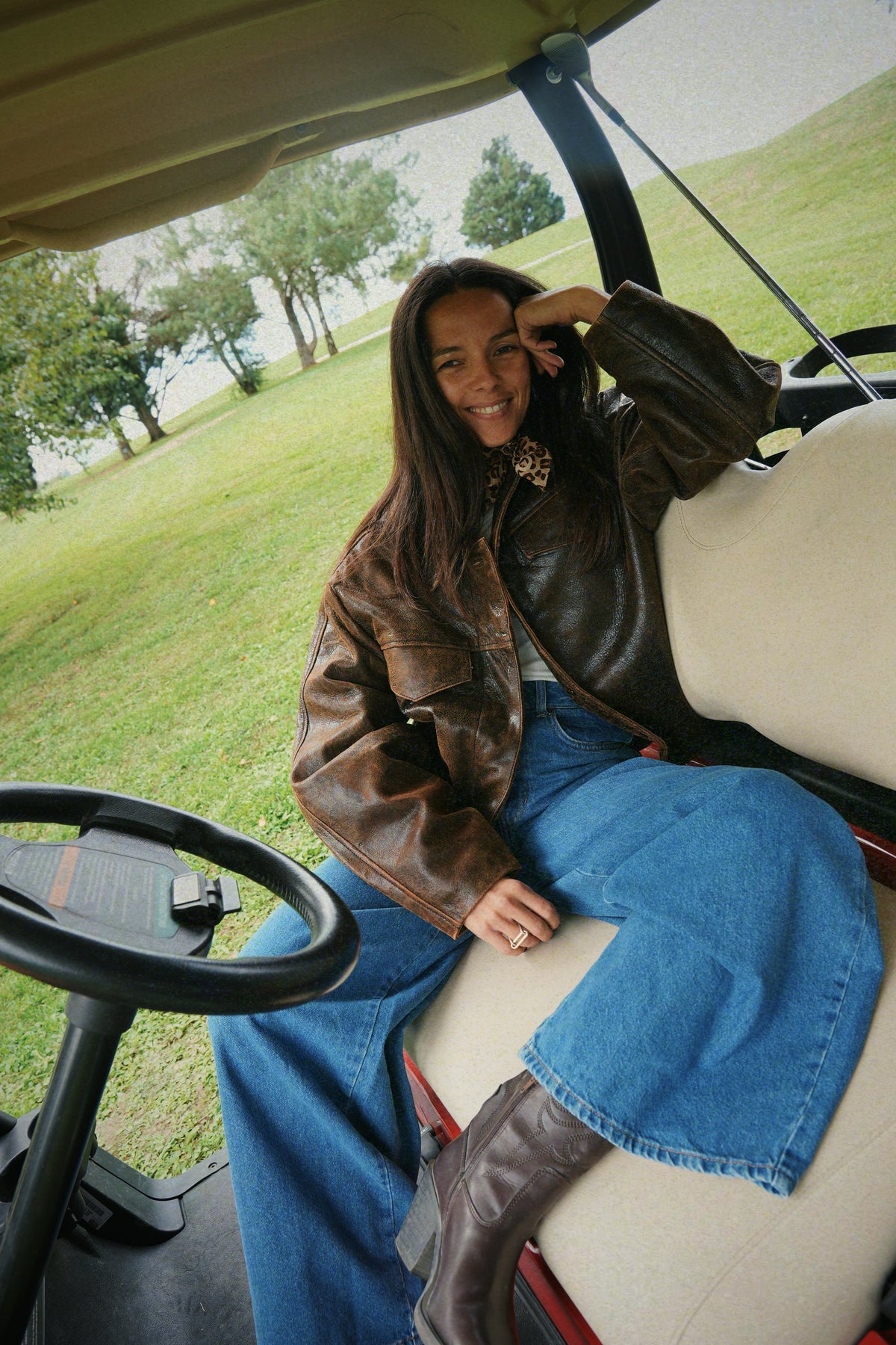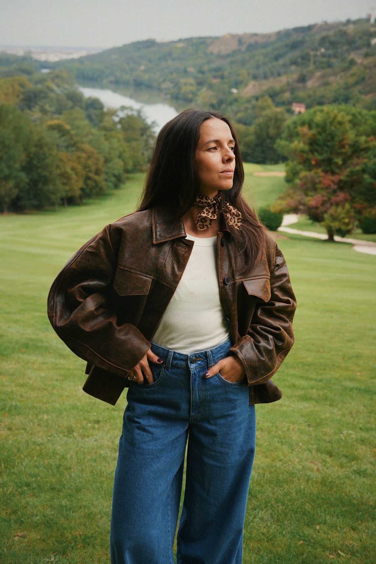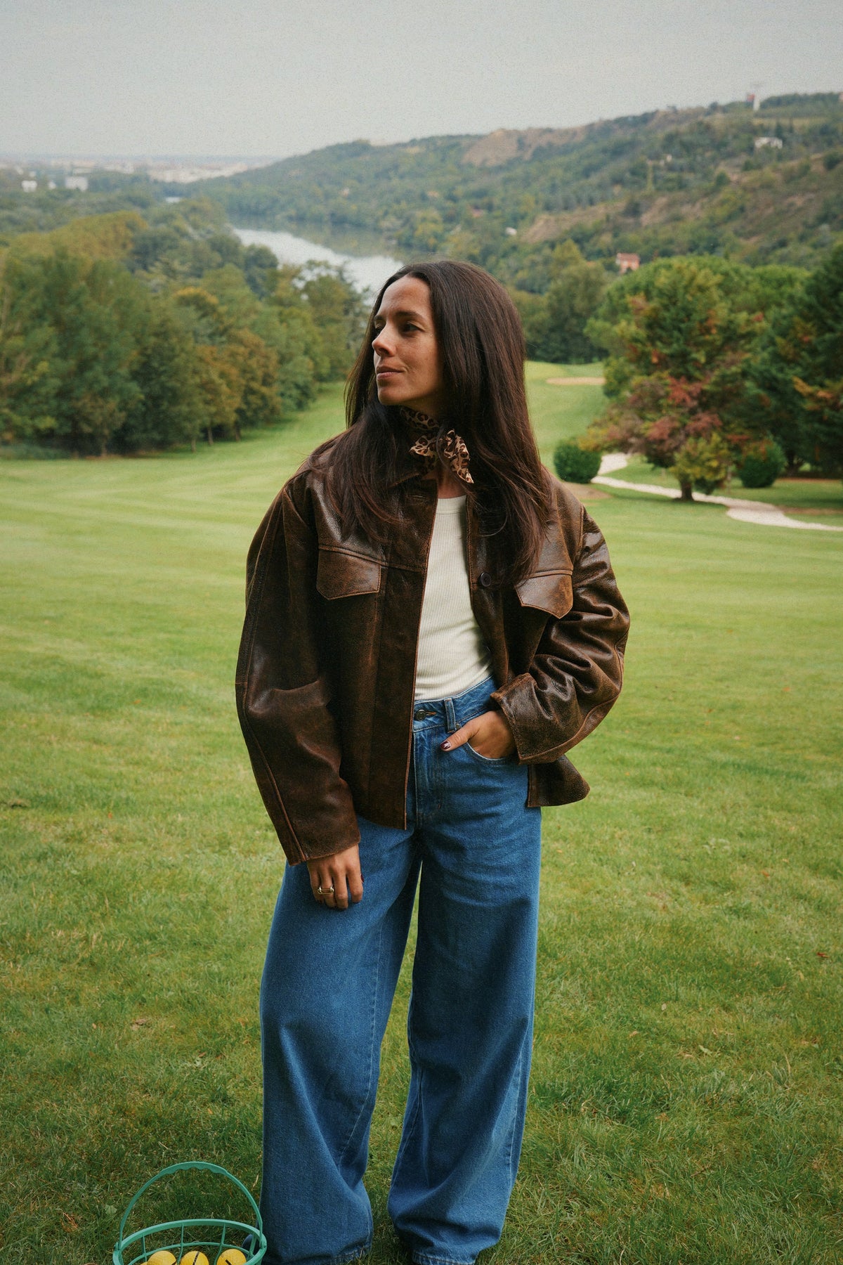 Tyra est un blouson oversize confectionné en cuir. Il possède un col à revers et des boutons sur le devant. Il souligne la silhouette avec audace, son intemporalité en fera une pièce maitresse de votre dressing pour les années à venir.