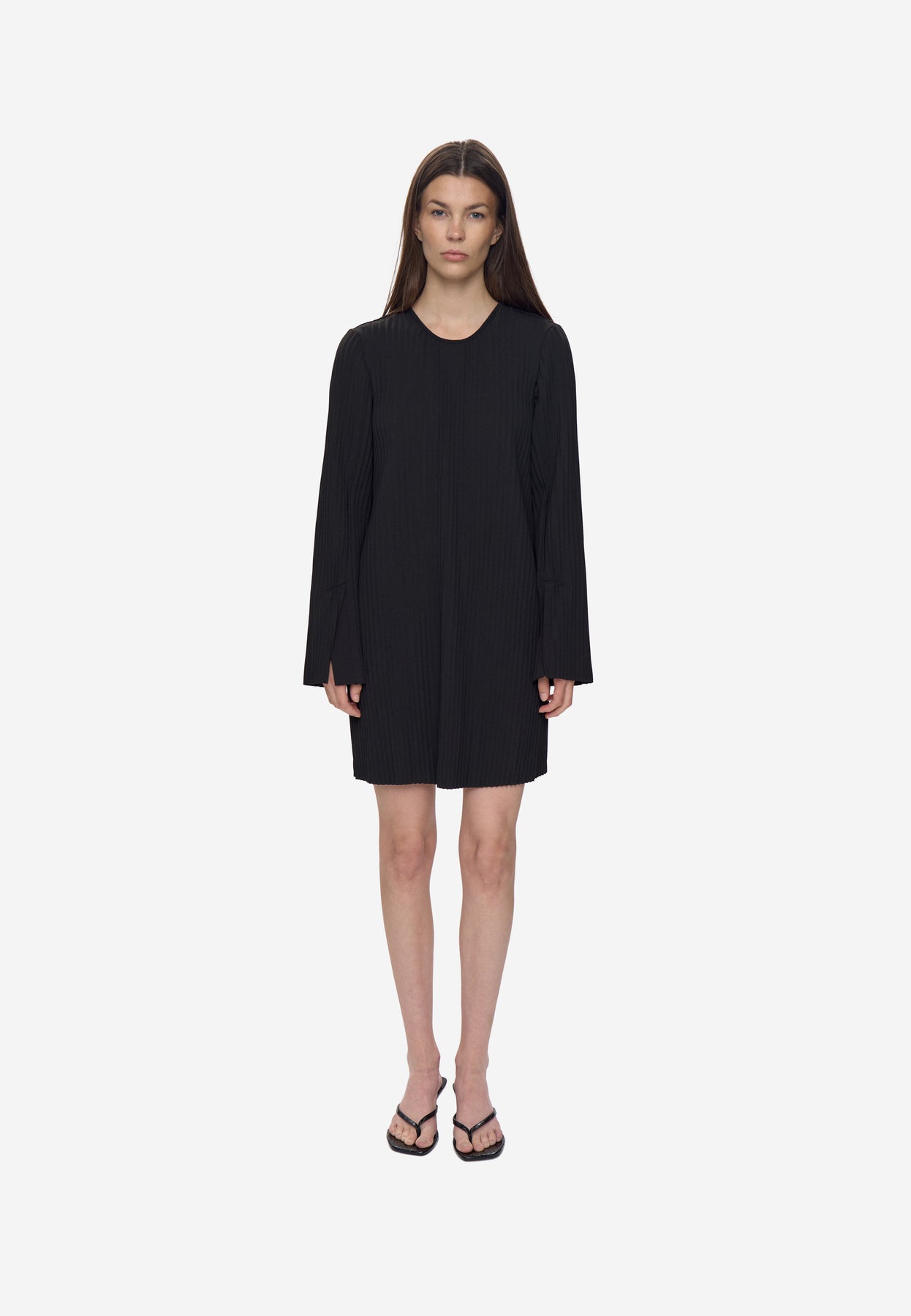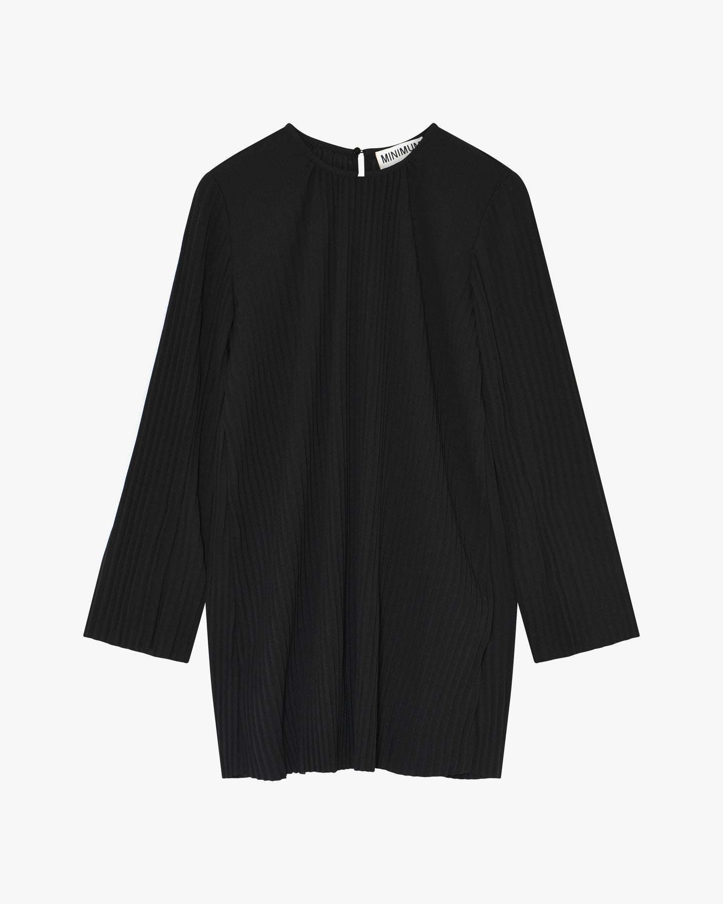 PIPPA est une robe noire signée Minimum. Elle présente une coupe droite, des manches longues et un col rond. Son tissu plissé apporte du relief et une touche d’élégance à cette pièce sobre et intemporelle.