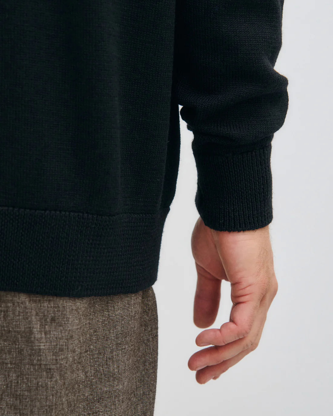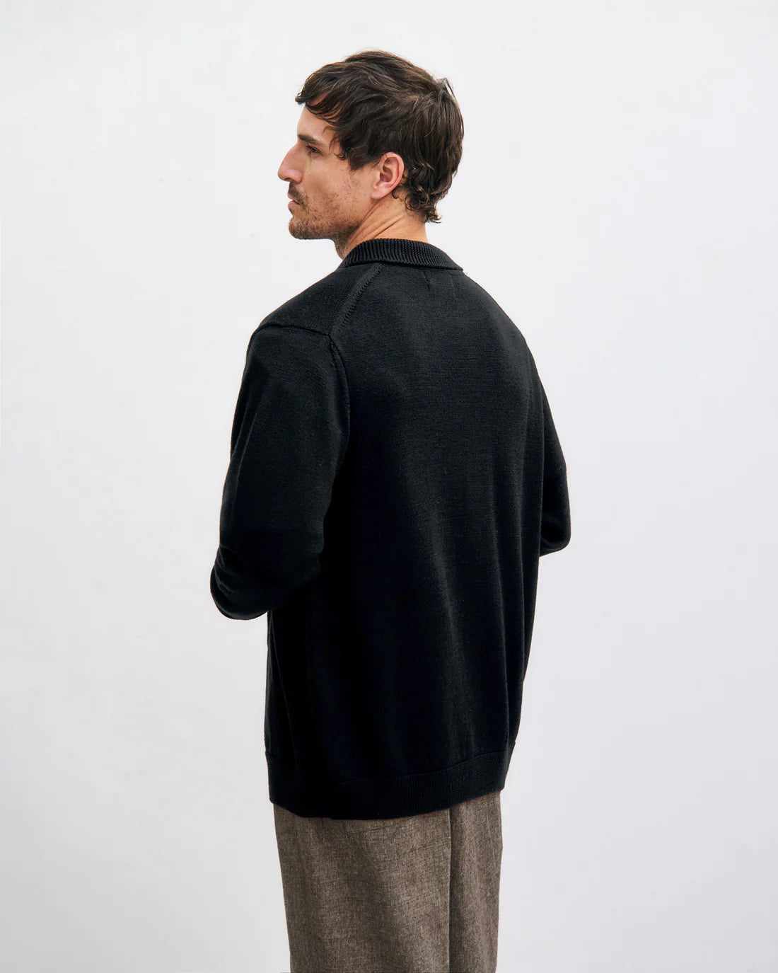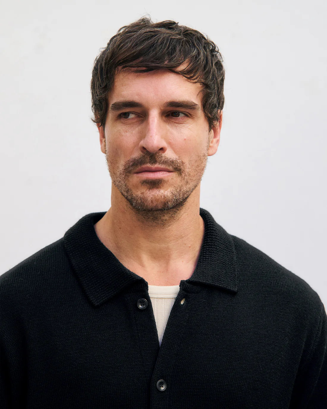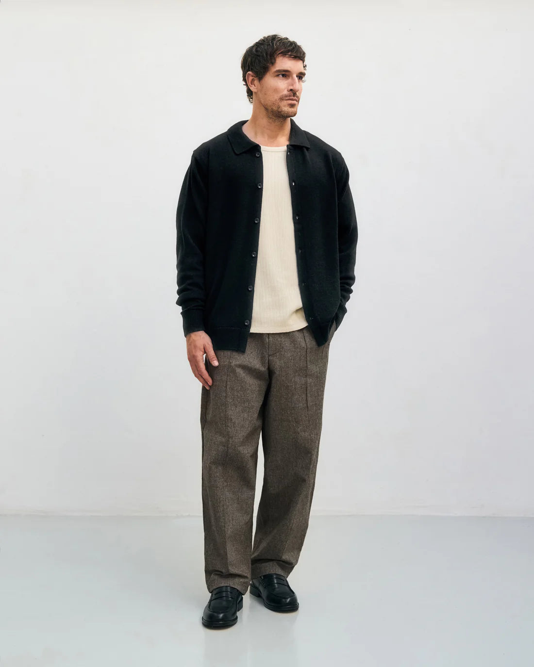 Ce cardigan hybride, entre chemise et cardigan, est tricoté au Portugal en laine mérinos. Grâce aux propriétés thermorégulatrices de cette fibre naturelle, il constitue une pièce idéale pour l’automne et l’hiver. Il est complété par des poignets et un ourlet côtelés, ainsi que par des boutons.