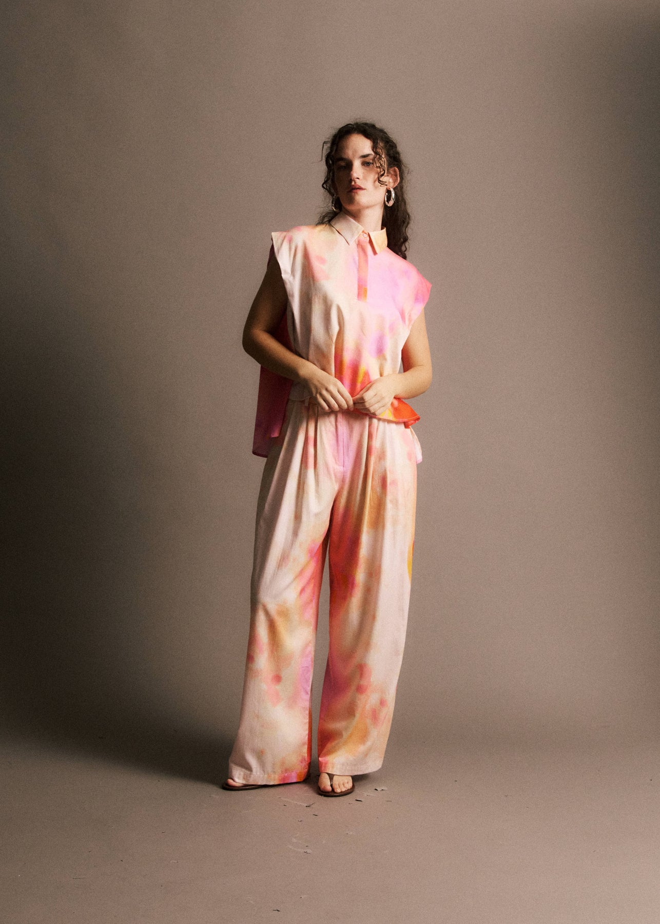 CYRILLE est un pantalon à pinces avec une coupe large. Coup de coeur pour son imprimé coloré qui ravivera tous vos looks. Il possède des pinces, des poches passepoilées. Il se ferme grâce à un bouton et une fermeture.